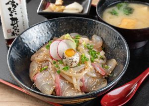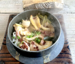 「剣先イカ霜造り」を筆頭に、「剣先イカの天ぷら」「剣先イカの一夜干し」「イカ天丼」「イカ釜飯」といったイカメニューや、
