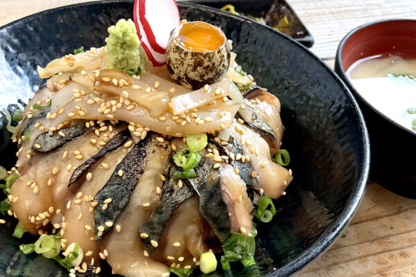 1980円(税込み)阿武町の 小野水産 が手がける酒粕で育てた「やまぐちほろ酔いさば」。ヘルシーなのに脂のノリは、もはやとろさば。皮目だけさっと炙る。それだけで、別物になります。とろさばの旨味に、ごま油香る甘めの醤油ダレ。剣先イカの甘さ、ごま・薬味のキレ、卵を絡めた瞬間・・正直、反則級。今季限りの「ほろ酔いサバ」、食べ逃し注意です! 具2倍大盛り「特盛り」がプラス1200円でできます!